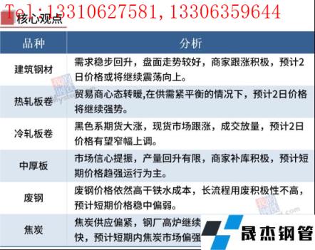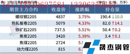 3月1日,國內(nèi)厚壁無縫鋼管市場漲幅擴大,唐山普方坯出廠價漲50報4600元/噸。今日黑色系期市大幅上漲,現(xiàn)貨市場跟漲,市場情緒積極,成交放量。