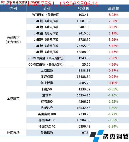 免責聲明:本網站(山東聊城晟杰無縫鋼管廠m.vsocial.cn)刊載的“2022年03月02日早讀:黑色系夜盤飄紅,國際原油金屬期價齊漲”等均源于網絡,版權歸原作者所有,且僅代表原作者觀點,本文所載信息僅供參考。轉載僅為學習與交流之目的,如無意中侵犯您的合法權益,請及時聯系刪除。本網站刊登此篇文章并不意味著本站贊同其觀點或證實其內容的真實性,我們不對其科學性、嚴肅性等作任何形式的保證。如果侵犯了您的版權,請盡快聯系我們予以撤銷,謝謝合作!