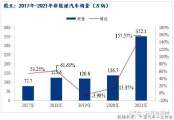 根據(jù)中汽協(xié)的數(shù)據(jù)統(tǒng)計顯示,2021年,我國汽車產(chǎn)銷量分別完成了2608.2萬輛和2627.5萬輛,同比分別增長3.4%和3.8%。其中,乘用車產(chǎn)銷量分別為2140.8萬輛和2148.2萬輛,同比分別增長7.1%和6.5%。其中新能源汽車表現(xiàn)特別優(yōu)異,大幅超出年初預期,全年國內(nèi)新能源汽車銷量達到352.1萬輛,同比增長157.5%。