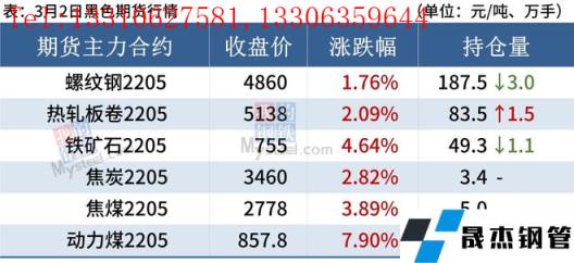 熱軋板卷:3月2日,全國24個主要城市4.75mm熱軋板卷均價5120元/噸,較上個交易日上漲41元/噸。早盤大漲,現貨報價繼續上漲,成交表現尚可,午后期卷漲幅收縮,下游采購量放緩,全天成交一般。綜合來看,3月份在冬奧會結束后,兩會、殘奧會即將開幕,3月份產量雖然會有上升但幅度不大,市場到貨壓力小幅減小,以及穩增長政策的刺激下,下游需求或將持續增長,實現供需緊平衡。綜合來看,預計3日熱軋板卷價格或震蕩偏強為主。