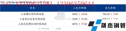 3月2日普鋼絕對價格指數變化:綜合指數5189.24,上漲32.04;螺紋鋼指數4933.65,上漲33.1;線材指數5269.51,上漲30.43;熱軋板卷指數5102.79,上漲41.35;冷軋板卷指數5540.29,上漲28.86;中厚板指數5167.61,上漲20.52。