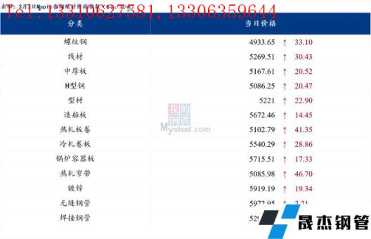 免責聲明:本網站(山東聊城晟杰無縫鋼管廠m.vsocial.cn)刊載的“2022年03月02日日報:鋼材_無縫鋼管價格指數上漲32.04元/噸”等均源于網絡,版權歸原作者所有,且僅代表原作者觀點,本文所載信息僅供參考。轉載僅為學習與交流之目的,如無意中侵犯您的合法權益,請及時聯系刪除。本網站刊登此篇文章并不意味著本站贊同其觀點或證實其內容的真實性,我們不對其科學性、嚴肅性等作任何形式的保證。如果侵犯了您的版權,請盡快聯系我們予以撤銷,謝謝合作!