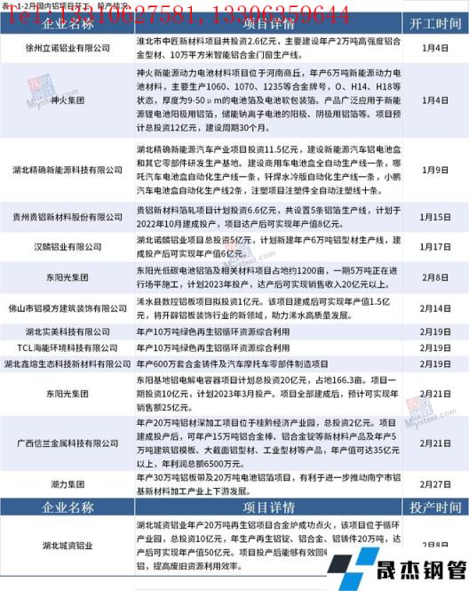免責聲明:本網站(山東聊城晟杰無縫鋼管廠m.vsocial.cn)刊載的“1-2月國內鋁項目開工、投產情況”等均源于網絡,版權歸原作者所有,且僅代表原作者觀點,本文所載信息僅供參考。轉載僅為學習與交流之目的,如無意中侵犯您的合法權益,請及時聯系刪除。本網站刊登此篇文章并不意味著本站贊同其觀點或證實其內容的真實性,我們不對其科學性、嚴肅性等作任何形式的保證。如果侵犯了您的版權,請盡快聯系我們予以撤銷,謝謝合作!