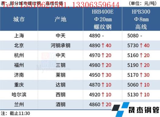 ◎福州:3日早盤建材市場價格漲20,現線三鋼5190三寶5170,螺三鋼4980三寶4960大東海4960吳鐵4950,盤三鋼5260三寶5240。(單位:元/噸)
