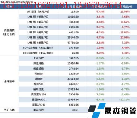 金融市場(chǎng):本周主要商品期貨全部上漲,WTI原油大漲25.08%。全球股市全部下跌,歐洲股市跌幅靠前;美元指數(shù)98.51,上漲2.04%。