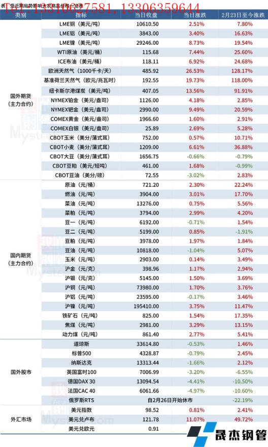 免責聲明:本網站(山東聊城晟杰無縫鋼管廠m.vsocial.cn)刊載的“2022年03月07日早讀:周末唐山鋼坯累漲60元,國際油價開盤升破130美元”等均源于網絡,版權歸原作者所有,且僅代表原作者觀點,本文所載信息僅供參考。轉載僅為學習與交流之目的,如無意中侵犯您的合法權益,請及時聯系刪除。本網站刊登此篇文章并不意味著本站贊同其觀點或證實其內容的真實性,我們不對其科學性、嚴肅性等作任何形式的保證。如果侵犯了您的版權,請盡快聯系我們予以撤銷,謝謝合作!