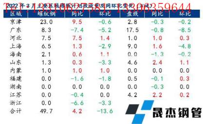 從投放區域來看,3月東北無縫厚壁鋼管廠家螺紋主要投放華北、盤線主要投放華東,區域選擇較以往變化不大;螺紋對華北、華南、華東的投放量分別為30.5萬噸、10.萬噸和7.8萬噸,盤線對華東、華南、華北的投放量分別為22.3萬噸、17.5萬噸和3.8萬噸。