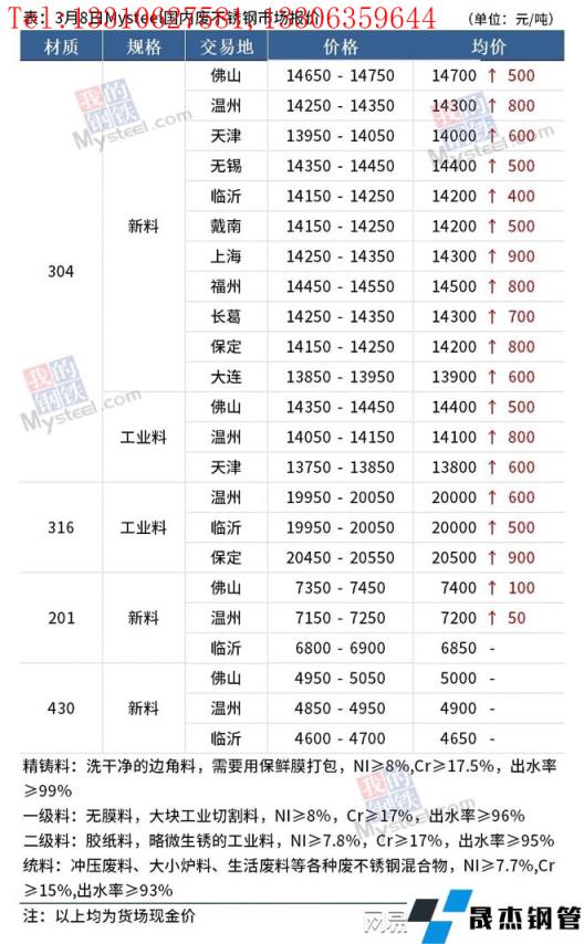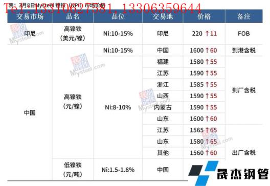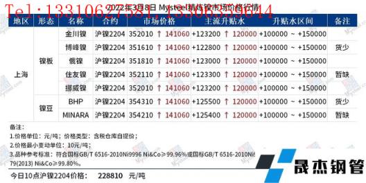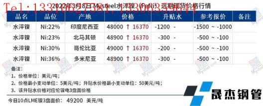 免責(zé)聲明:本網(wǎng)站(山東聊城晟杰無(wú)縫鋼管廠m.vsocial.cn)刊載的“鎳產(chǎn)業(yè)鏈價(jià)格(2022.3.8)”等均源于網(wǎng)絡(luò),版權(quán)歸原作者所有,且僅代表原作者觀點(diǎn),本文所載信息僅供參考。轉(zhuǎn)載僅為學(xué)習(xí)與交流之目的,如無(wú)意中侵犯您的合法權(quán)益,請(qǐng)及時(shí)聯(lián)系刪除。本網(wǎng)站刊登此篇文章并不意味著本站贊同其觀點(diǎn)或證實(shí)其內(nèi)容的真實(shí)性,我們不對(duì)其科學(xué)性、嚴(yán)肅性等作任何形式的保證。如果侵犯了您的版權(quán),請(qǐng)盡快聯(lián)系我們予以撤銷(xiāo),謝謝合作!