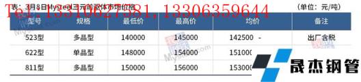 3月8日三元前驅(qū)體市場(chǎng)價(jià)格持平,523型14-14.5萬(wàn)元/噸;622型14.8-15.2萬(wàn)元/噸;811型15-15.6萬(wàn)元/噸。