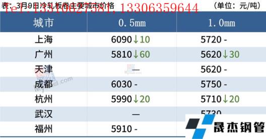 冷軋板卷:3月9日,全國24個主要城市1.0mm冷卷均價5708元/噸,較上個交易日下跌5元/噸。隨著黑色系震蕩走弱,市場價格步入下行通道,廣州、南昌、杭州等地率先下調價格,其余市場則多暗降出貨。下游“買漲不買跌”心態明顯,多持觀望態度,謹慎拿貨。綜合來看,故預計10日國內冷軋板卷價格或將繼續偏弱運行。