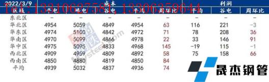 獨立電弧爐建筑厚壁無縫鋼管無縫厚壁鋼管廠家周度成本調研(2022年3月9日)(單位:元/噸)