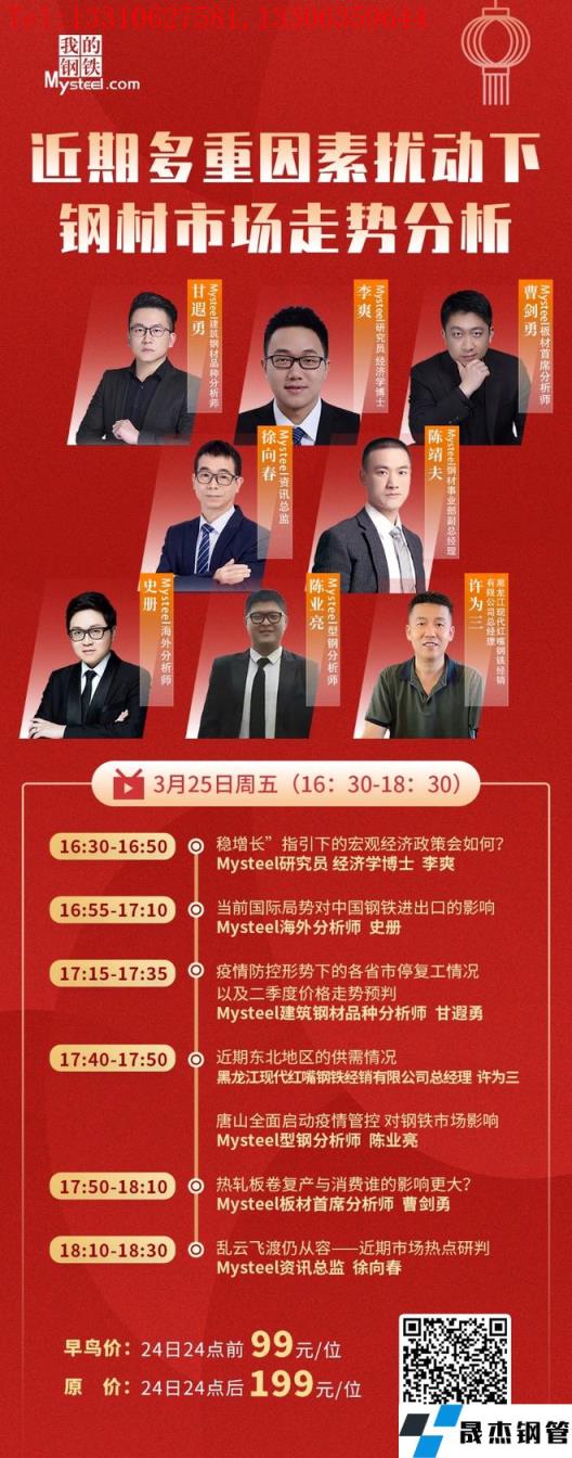 3月25日周五下午16:30,黑龍江現(xiàn)代紅嘴鋼鐵經(jīng)銷有限公司總經(jīng)理許為三、資訊總監(jiān)徐向春、經(jīng)濟(jì)學(xué)博士研究員李爽、板材首席分析師曹劍勇、建筑厚壁無縫鋼管品種分析師甘遐勇、型鋼分析師陳業(yè)亮及國(guó)際鋼鐵市場(chǎng)分析師史冊(cè),將做客直播間,聊一聊近期多重因素?cái)_動(dòng)下對(duì)鋼鐵市場(chǎng)的影響有哪些?