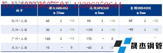 以主要品種螺紋鋼來看,上海市場與杭州價差日環比小幅收窄,價差為-60元/噸。上海市場與華南區域價差日環比小幅收窄,價差為-160噸。上海市場與東北區域日環比價差小幅收窄,價差為-30元/噸。上海市場與華中區域價差日環比持平,價差為-10元/噸。