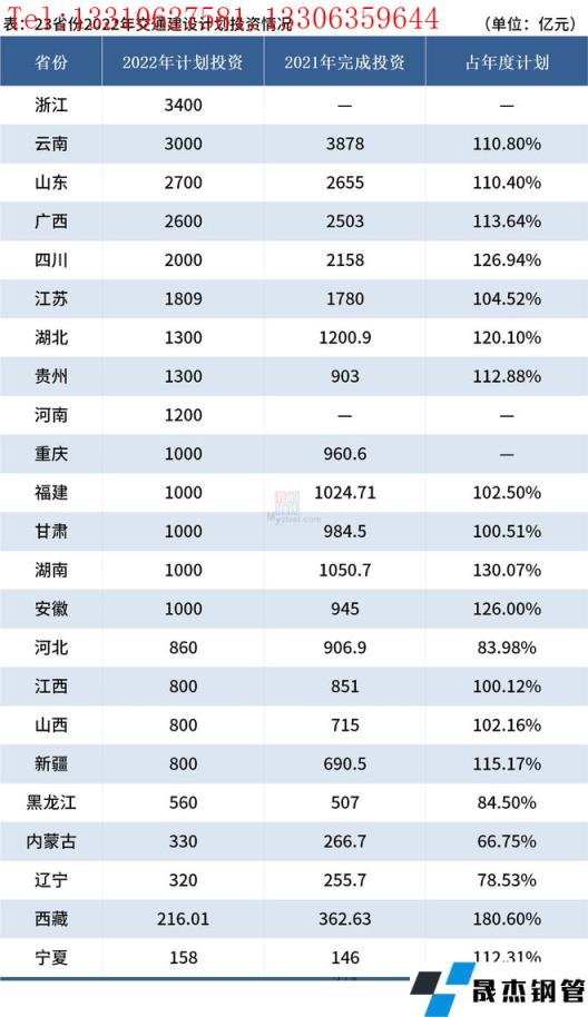 免責聲明:本網站(山東聊城晟杰無縫鋼管廠m.vsocial.cn)刊載的“23省份2022年交通建設計劃投資近3萬億元”等均源于網絡,版權歸原作者所有,且僅代表原作者觀點,本文所載信息僅供參考。轉載僅為學習與交流之目的,如無意中侵犯您的合法權益,請及時聯系刪除。本網站刊登此篇文章并不意味著本站贊同其觀點或證實其內容的真實性,我們不對其科學性、嚴肅性等作任何形式的保證。如果侵犯了您的版權,請盡快聯系我們予以撤銷,謝謝合作!