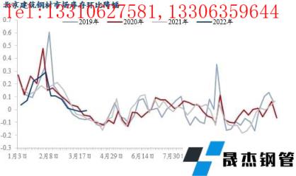 2022年北京建筑厚壁無(wú)縫鋼管市場(chǎng)庫(kù)存量在春節(jié)后的第5周達(dá)到峰值,較往年累庫(kù)周期延長(zhǎng)了1-2周,之后庫(kù)存量進(jìn)入緩慢去化階段,但是從近幾周庫(kù)存去化情況來看,庫(kù)存下降情況不及預(yù)期。截止到3月24日,北京建筑厚壁無(wú)縫鋼管市場(chǎng)庫(kù)存量82.18萬(wàn)噸,周環(huán)比降0.72%,2019-2021年同期的周環(huán)比降幅分別為7.9%、5.3%、8%;另外目前市場(chǎng)庫(kù)存量較今年庫(kù)存高點(diǎn)下降了2.8%,而2019-2021年同期庫(kù)存量較當(dāng)年的庫(kù)存峰值分別下降了17.8%、9.3%、15.5%。庫(kù)存下降除供應(yīng)量環(huán)比略增外,主因是需求下降,且受疫情影響資源向外分流困難。