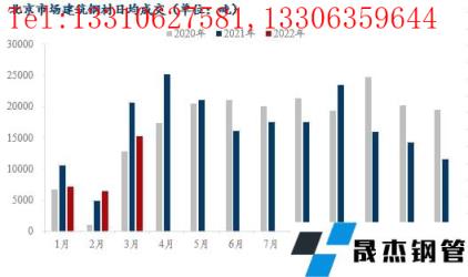 2022年3月份北京建筑厚壁無(wú)縫鋼管市場(chǎng)樣本商家日成交量為1.5萬(wàn)噸,雖然成交環(huán)比增加,但是較去年同期低26%。因樣本商家成交量里包含部分投機(jī)需求,故三月份間歇性統(tǒng)計(jì)了北京市場(chǎng)的部分庫(kù)房的實(shí)際出庫(kù)量,其中樣本庫(kù)房為7個(gè),其庫(kù)存量占市場(chǎng)總市場(chǎng)庫(kù)存量的76%左右,主要涉及無(wú)縫厚壁鋼管廠家資源有河鋼、敬業(yè)、凌鋼、2672、鑫達(dá)、亞新、新?lián)徜摗⑽髁值龋?月份的日度出庫(kù)量均值在1.7萬(wàn)噸左右。整體出庫(kù)表現(xiàn)不及預(yù)期,且月底較月初未有明顯好轉(zhuǎn)。