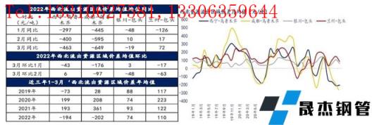 據(jù)調(diào)研跟蹤,目前區(qū)域間資源流動的頻率、主動性、體量較往年相比明顯下降,主要原因在于南下利潤倒掛的時間周期占比較高、全國范圍內(nèi)執(zhí)行能耗雙控導致各區(qū)域資源供應均相對有限、以及無縫厚壁鋼管廠家目前趨向增加直供比例三大重要原因。