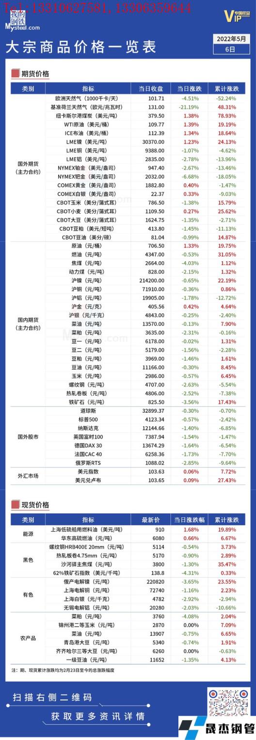免責聲明:本網(wǎng)站(山東聊城晟杰無縫鋼管廠m.vsocial.cn)刊載的“俄烏局勢丨大宗商品價格一覽表(5月6日)”等均源于網(wǎng)絡,版權歸原作者所有,且僅代表原作者觀點,本文所載信息僅供參考。轉載僅為學習與交流之目的,如無意中侵犯您的合法權益,請及時聯(lián)系刪除。本網(wǎng)站刊登此篇文章并不意味著本站贊同其觀點或證實其內容的真實性,我們不對其科學性、嚴肅性等作任何形式的保證。如果侵犯了您的版權,請盡快聯(lián)系我們予以撤銷,謝謝合作!