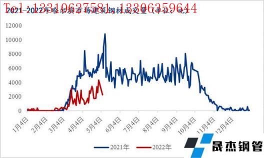 4月哈爾濱市場螺線成交量日均值在2233噸,同比減少3521噸減幅61%,今年成交高值在4330噸,去年成交高值在7900噸。疫情管控下,下游需求啟動緩慢,同時商家對于后期預期較弱扣貨意愿較低,市場成交活躍度大大低于常態(tài)。