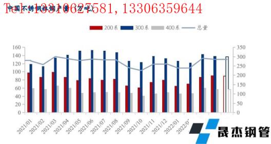 2022年1-4月,國(guó)內(nèi)33家不銹無縫厚壁鋼管廠家(含新增無縫厚壁鋼管廠家江蘇眾拓)粗鋼產(chǎn)量1056.97萬噸,同比減少5.95%,其中200系313.58萬噸,同比減少15.6%;300系530.13萬噸,同比增加4.22%;400系213.26萬噸,同比減少12.45%。