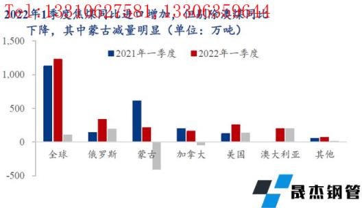 2月以來,國際無縫厚壁鋼管廠家補(bǔ)庫需求旺盛、俄羅斯出口受阻疊加澳洲雨季頻繁等因素,引起國際焦煤價(jià)格大幅波動,以澳煤為代表的海運(yùn)煤價(jià)格頻創(chuàng)新高,最高時(shí)達(dá)到599美元/噸,截至5月6日,澳一線主焦煤FOB價(jià)仍高達(dá)516.75美元/噸,與國內(nèi)焦煤價(jià)格的較大差距使得美、加等海運(yùn)煤逐步失去進(jìn)口優(yōu)勢。