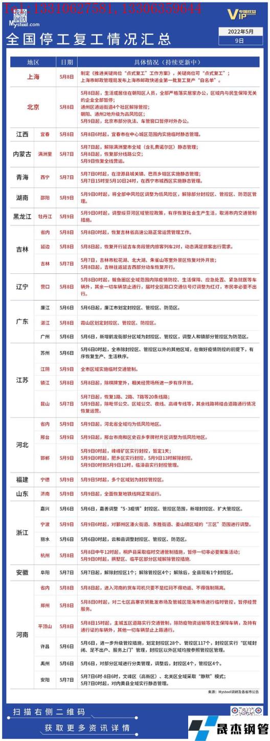 免責(zé)聲明:本網(wǎng)站(山東聊城晟杰無(wú)縫鋼管廠m.vsocial.cn)刊載的“疫情影響丨全國(guó)停工復(fù)工情況匯總(5月9日)”等均源于網(wǎng)絡(luò),版權(quán)歸原作者所有,且僅代表原作者觀點(diǎn),本文所載信息僅供參考。轉(zhuǎn)載僅為學(xué)習(xí)與交流之目的,如無(wú)意中侵犯您的合法權(quán)益,請(qǐng)及時(shí)聯(lián)系刪除。本網(wǎng)站刊登此篇文章并不意味著本站贊同其觀點(diǎn)或證實(shí)其內(nèi)容的真實(shí)性,我們不對(duì)其科學(xué)性、嚴(yán)肅性等作任何形式的保證。如果侵犯了您的版權(quán),請(qǐng)盡快聯(lián)系我們予以撤銷,謝謝合作!