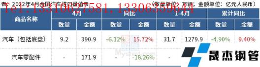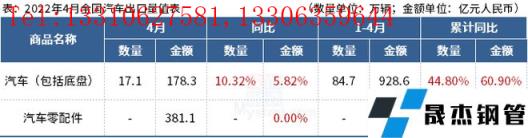 免責聲明:本網站(山東聊城晟杰無縫鋼管廠m.vsocial.cn)刊載的“海關總署:4月中國出口汽車17.1萬輛,同比增長10.32%”等均源于網絡,版權歸原作者所有,且僅代表原作者觀點,本文所載信息僅供參考。轉載僅為學習與交流之目的,如無意中侵犯您的合法權益,請及時聯系刪除。本網站刊登此篇文章并不意味著本站贊同其觀點或證實其內容的真實性,我們不對其科學性、嚴肅性等作任何形式的保證。如果侵犯了您的版權,請盡快聯系我們予以撤銷,謝謝合作!