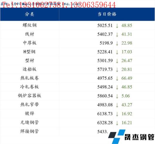 5月9日普鋼絕對(duì)價(jià)格指數(shù)變化:綜合指數(shù)5221.12,下跌43.46;螺紋鋼指數(shù)5025.51,下跌48.85;線材指數(shù)5402.37,下跌41.31;熱軋板卷指數(shù)4975.65,下跌66.49;冷軋板卷指數(shù)5498.24,下跌46.85;中厚板指數(shù)5198.9,下跌22.98。