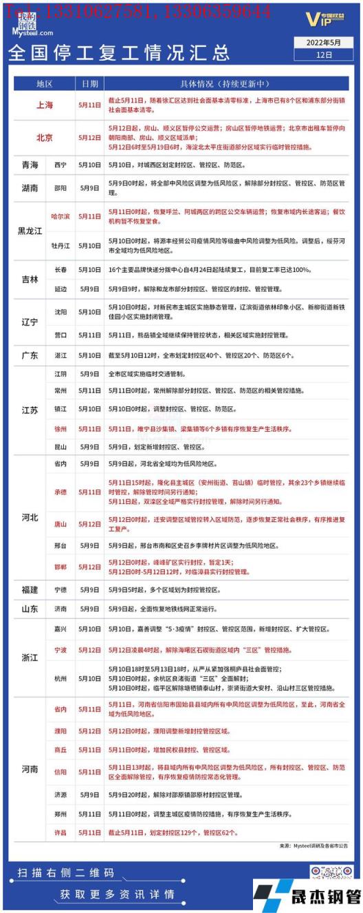 免責(zé)聲明:本網(wǎng)站(山東聊城晟杰無(wú)縫鋼管廠m.vsocial.cn)刊載的“疫情影響丨全國(guó)停工復(fù)工情況匯總(5月12日)”等均源于網(wǎng)絡(luò),版權(quán)歸原作者所有,且僅代表原作者觀點(diǎn),本文所載信息僅供參考。轉(zhuǎn)載僅為學(xué)習(xí)與交流之目的,如無(wú)意中侵犯您的合法權(quán)益,請(qǐng)及時(shí)聯(lián)系刪除。本網(wǎng)站刊登此篇文章并不意味著本站贊同其觀點(diǎn)或證實(shí)其內(nèi)容的真實(shí)性,我們不對(duì)其科學(xué)性、嚴(yán)肅性等作任何形式的保證。如果侵犯了您的版權(quán),請(qǐng)盡快聯(lián)系我們予以撤銷(xiāo),謝謝合作!