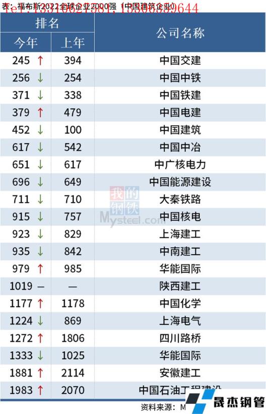 免責聲明:本網站(山東聊城晟杰無縫鋼管廠m.vsocial.cn)刊載的“中國20家建筑企業上榜福布斯2022全球企業2000強”等均源于網絡,版權歸原作者所有,且僅代表原作者觀點,本文所載信息僅供參考。轉載僅為學習與交流之目的,如無意中侵犯您的合法權益,請及時聯系刪除。本網站刊登此篇文章并不意味著本站贊同其觀點或證實其內容的真實性,我們不對其科學性、嚴肅性等作任何形式的保證。如果侵犯了您的版權,請盡快聯系我們予以撤銷,謝謝合作!