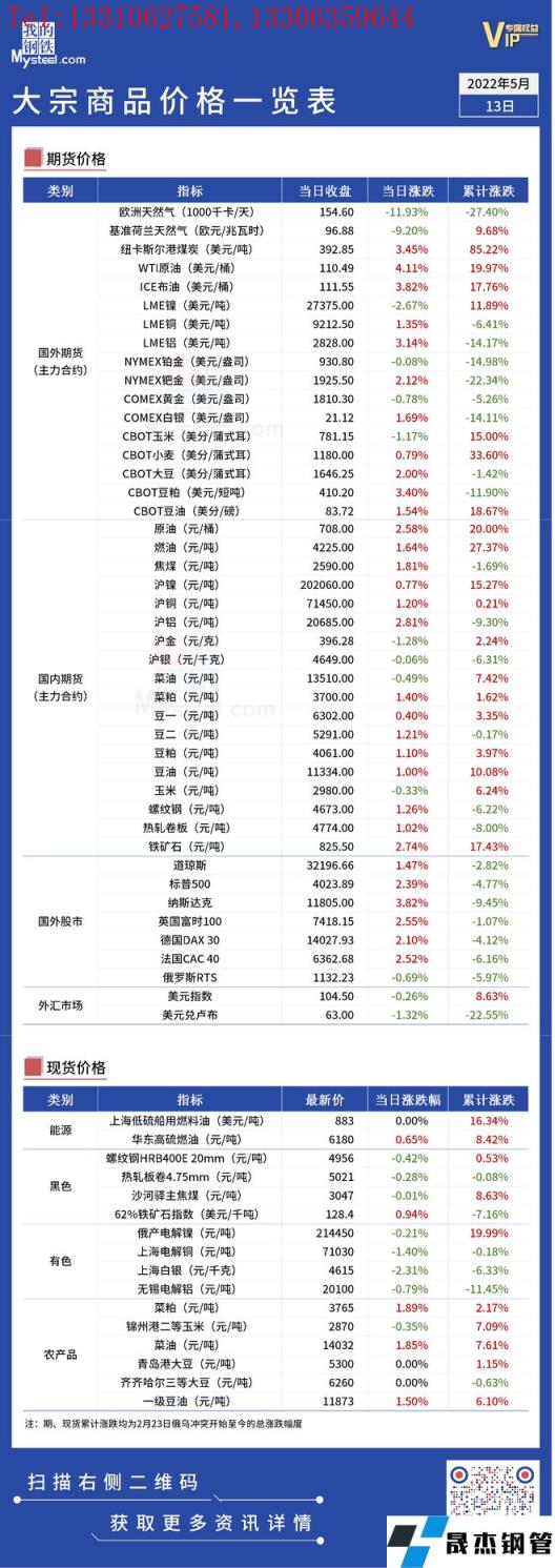免責聲明:本網站(山東聊城晟杰無縫鋼管廠m.vsocial.cn)刊載的“俄烏局勢丨大宗商品價格一覽表(5月13日)”等均源于網絡,版權歸原作者所有,且僅代表原作者觀點,本文所載信息僅供參考。轉載僅為學習與交流之目的,如無意中侵犯您的合法權益,請及時聯系刪除。本網站刊登此篇文章并不意味著本站贊同其觀點或證實其內容的真實性,我們不對其科學性、嚴肅性等作任何形式的保證。如果侵犯了您的版權,請盡快聯系我們予以撤銷,謝謝合作!