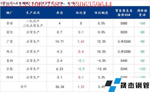 山東優特無縫厚壁鋼管廠家庫存36.34萬噸,環比增加1.21萬噸,增幅3.44%,同比增加18.68萬噸,增幅105.78%。生產方面:魯麗一軋停產,二軋正常生產;臨沂江泉停產。