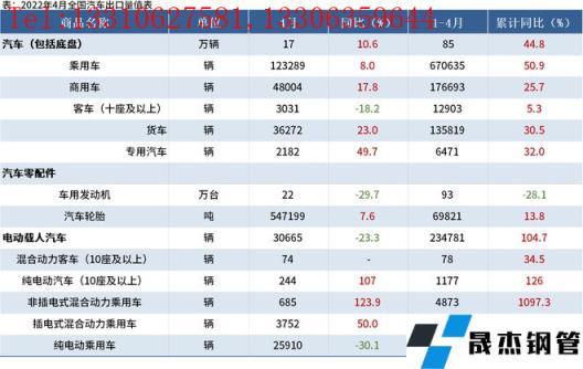 免責聲明:本網站(山東聊城晟杰無縫鋼管廠m.vsocial.cn)刊載的“海關總署:4月中國出口汽車17萬輛,同比增長10.6%”等均源于網絡,版權歸原作者所有,且僅代表原作者觀點,本文所載信息僅供參考。轉載僅為學習與交流之目的,如無意中侵犯您的合法權益,請及時聯系刪除。本網站刊登此篇文章并不意味著本站贊同其觀點或證實其內容的真實性,我們不對其科學性、嚴肅性等作任何形式的保證。如果侵犯了您的版權,請盡快聯系我們予以撤銷,謝謝合作!