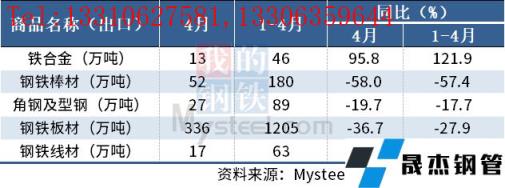 免責聲明:本網站(山東聊城晟杰無縫鋼管廠m.vsocial.cn)刊載的“海關總署:4月中國出口板材336萬噸,同比降36.7%”等均源于網絡,版權歸原作者所有,且僅代表原作者觀點,本文所載信息僅供參考。轉載僅為學習與交流之目的,如無意中侵犯您的合法權益,請及時聯系刪除。本網站刊登此篇文章并不意味著本站贊同其觀點或證實其內容的真實性,我們不對其科學性、嚴肅性等作任何形式的保證。如果侵犯了您的版權,請盡快聯系我們予以撤銷,謝謝合作!
