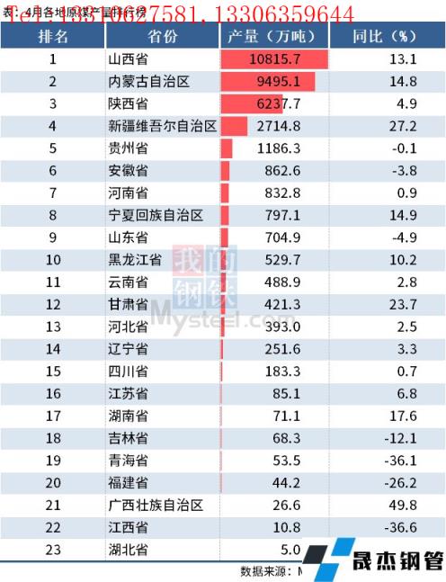 免責聲明:本網站(山東聊城晟杰無縫鋼管廠m.vsocial.cn)刊載的“統計局:前4月全國分省市原煤產量出爐,山西增近10%”等均源于網絡,版權歸原作者所有,且僅代表原作者觀點,本文所載信息僅供參考。轉載僅為學習與交流之目的,如無意中侵犯您的合法權益,請及時聯系刪除。本網站刊登此篇文章并不意味著本站贊同其觀點或證實其內容的真實性,我們不對其科學性、嚴肅性等作任何形式的保證。如果侵犯了您的版權,請盡快聯系我們予以撤銷,謝謝合作!