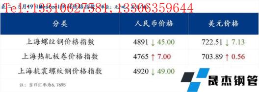 分地區方面,上海螺紋鋼價格指數4891,下跌45.0;上海熱軋板卷價格指數4765,上漲7.0。(單位:元/噸)