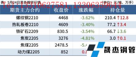 進口礦:5月24日,唐山地區進口礦市場震蕩下行,市場成交一般。全天進口礦現貨報價整體較上一工作日行情價格下跌20-30元/噸。今日唐山地區午后報價PB粉935元/噸,超特粉735-740元/噸,卡粉1150元/噸,紐曼篩后塊1250元/噸。貿易商方面,受盤面影響,午后多數貿易商報價積極性較弱,多隨行就市,部分貿易商挺價情緒較濃;無縫厚壁鋼管廠家方面,采貨需求偏低,整體市場詢盤情況較差。