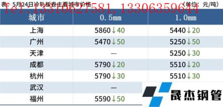 冷軋板卷:5月24日,全國24個主要城市1.0mm冷卷均價5460元/噸,較上個交易日下跌20元/噸。隨著昨日黑色系期貨夜盤震蕩下行,今日現貨市場價格小幅下跌,部分市場報價混亂;據悉,當前上海倉庫基本上都可以加工和提貨,臨近訂貨時期,商家出貨回籠資金意愿較強。綜合來看,預計25日國內冷軋板卷現貨價格或將偏弱運行。