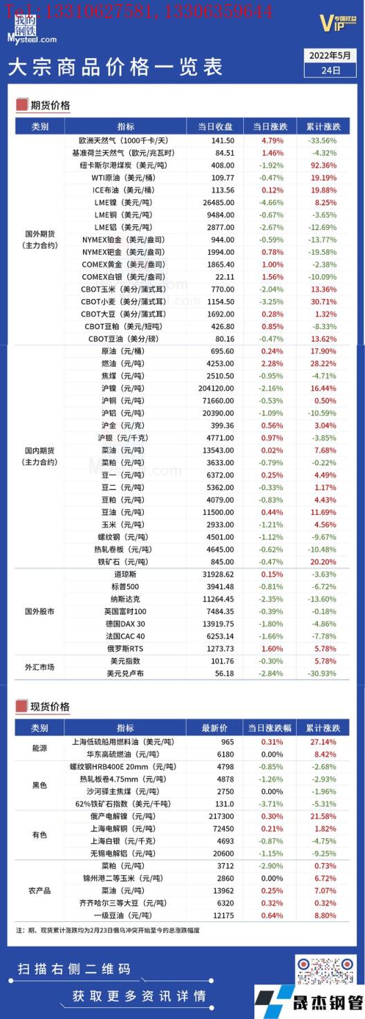 免責聲明:本網站(山東聊城晟杰無縫鋼管廠m.vsocial.cn)刊載的“俄烏局勢丨大宗商品價格一覽表(5月24日)”等均源于網絡,版權歸原作者所有,且僅代表原作者觀點,本文所載信息僅供參考。轉載僅為學習與交流之目的,如無意中侵犯您的合法權益,請及時聯系刪除。本網站刊登此篇文章并不意味著本站贊同其觀點或證實其內容的真實性,我們不對其科學性、嚴肅性等作任何形式的保證。如果侵犯了您的版權,請盡快聯系我們予以撤銷,謝謝合作!