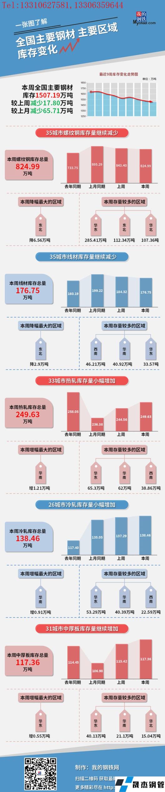 本周,全國主要厚壁無縫鋼管社會庫存1507.19萬噸,較上周減少17.8萬噸,較上月減少65.71萬噸;螺紋鋼庫存總量824.99萬噸。