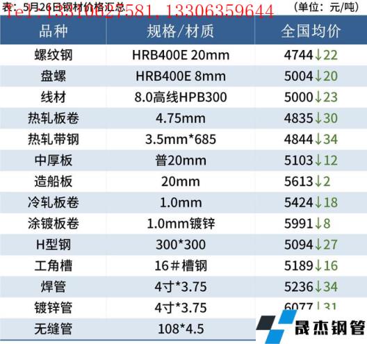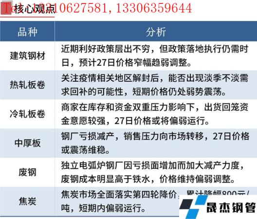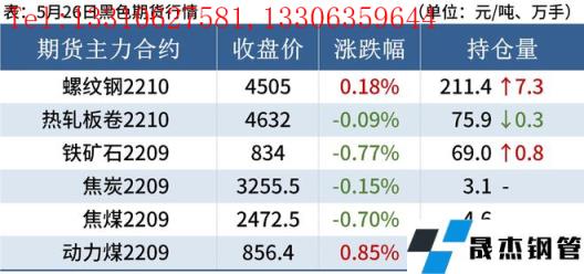 建筑厚壁無(wú)縫鋼管:5月26日,全國(guó)31個(gè)主要城市20mm三級(jí)抗震螺紋鋼均價(jià)4744元/噸,較上個(gè)交易日下跌22元/噸。受現(xiàn)貨持續(xù)回落,本周無(wú)縫厚壁鋼管廠家減產(chǎn)范圍擴(kuò)大,螺紋鋼產(chǎn)量小幅下降,廠庫(kù)小幅上升,但社庫(kù)持續(xù)下降,表觀消費(fèi)小幅回落。短期來看,盡管近期利好政策層出不窮,但政策落地執(zhí)行仍需時(shí)日。目前市場(chǎng)情緒依然偏空,短期仍然需要進(jìn)一步提振市場(chǎng)消費(fèi)信心及投資信心。因此預(yù)計(jì)27日國(guó)內(nèi)建筑厚壁無(wú)縫鋼管價(jià)格或?qū)⒗^續(xù)窄幅趨弱調(diào)整為主。
