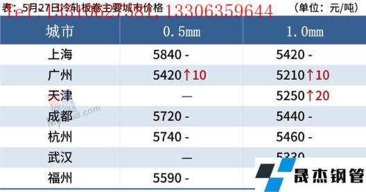 冷軋板卷:5月27日,全國24個主要城市1.0mm冷卷均價5425元/噸,較上個交易日上漲1元/噸。黑色系期貨盤面止跌反彈,市場信心稍有提振,釋放部分投機需求,多數商家以出貨回籠資金操作為主,成交稍有好轉。據商家反饋,當前下游制造業都在緩慢復蘇狀態,其接單一般,采購心態也較為謹慎,未見大規模補庫采購的跡象。就下周市場而言,臨近月底,考慮到市場商家資金和庫存壓力均較大,預計下周全國市場冷軋板卷價格或將窄幅震蕩運行。