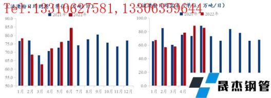 但隨著疫情影響的消退,按正常生產節奏上高爐鐵水產量月環比依舊出現增量,因此生產日耗增加,同時為保證廠內正常生產,在疫情常態化無縫厚壁鋼管廠家提貨需求也不斷增加,廠內庫存維持近兩月的相對高位。
