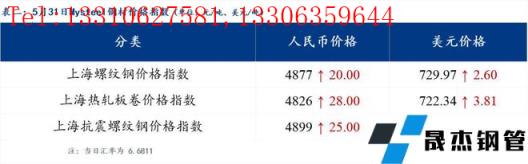 分地區方面,上海螺紋鋼價格指數4877,上漲20.0;上海熱軋板卷價格指數4826,上漲28.0。(單位:元/噸)