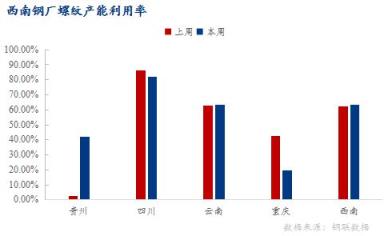 四川區域:部分無縫厚壁鋼管廠家錯峰生產或檢修,產量下降,螺紋鋼產能利用率82.15%,環比下降3.97%;開工率90.48%,環比持平;周產量31.02萬噸,環比減少1.5萬噸。
