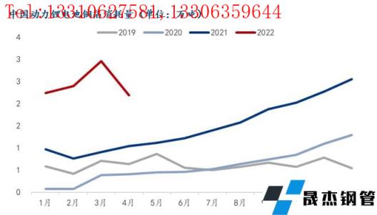 2022年前4個(gè)月中國(guó)動(dòng)力鋰電池產(chǎn)量為13GWh,同比增速超過180%,其中3月再度創(chuàng)歷史新高,動(dòng)力電池類鋰電銅箔需求量接近10萬噸。