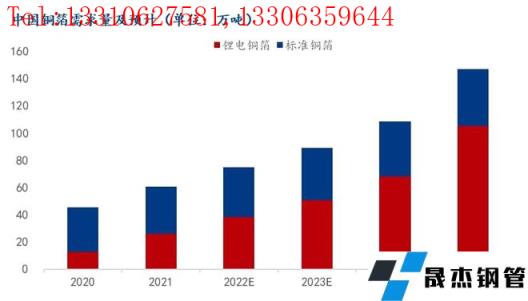 萬噸,儲(chǔ)能類鋰電池用銅箔量約為3萬噸。2021年鋰電銅箔總需求為26萬噸,較2020年翻一番。