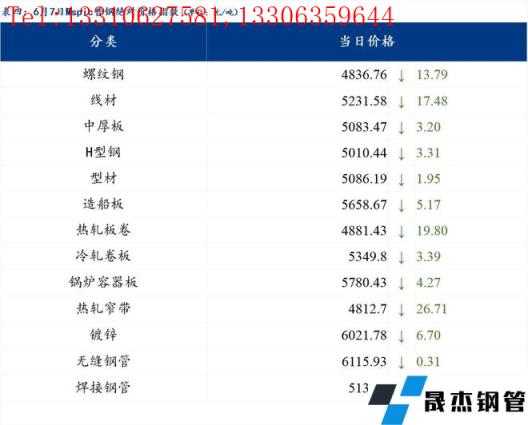 6月7日普鋼絕對價格指數變化:綜合指數5067.23,下跌13.43;螺紋鋼指數4836.76,下跌13.79;線材指數5231.58,下跌17.48;熱軋板卷指數4881.43,下跌19.8;冷軋板卷指數5349.8,下跌3.39;中厚板指數5083.47,下跌3.2。