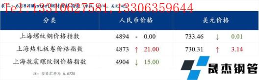 分地區(qū)方面,上海螺紋鋼價格指數(shù)4894,持平0.0;上海熱軋板卷價格指數(shù)4873,上漲21.0。(單位:元/噸)