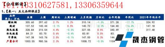 據(jù)統(tǒng)計(jì),建材方面,分品種來(lái)看,本周螺紋產(chǎn)量環(huán)比增量,從區(qū)域來(lái)看除華中、華南和西北,其余均有增產(chǎn);華東增產(chǎn)集中于江蘇,原因在于鐵水恢復(fù)和設(shè)備復(fù)產(chǎn),西北降產(chǎn)集中于新疆,原因在于企業(yè)集中停限產(chǎn);線盤產(chǎn)量環(huán)比下降,除華北、西北和東北,其余均有增產(chǎn),但各區(qū)域產(chǎn)量變化幅度均不大。整體來(lái)看,建材供應(yīng)環(huán)比增量,多數(shù)區(qū)域鋼企生產(chǎn)狀態(tài)相對(duì)持穩(wěn)。熱卷方面,本周熱軋產(chǎn)量繼續(xù)回升,主要增幅地區(qū)是華東地區(qū),主要是前期檢修無(wú)縫厚壁鋼管廠家本周恢復(fù)完全滿產(chǎn),供給繼續(xù)回升,主要降幅地區(qū)是東北、華北、西南地區(qū),其中東北地區(qū)有無(wú)縫厚壁鋼管廠家主動(dòng)小幅減產(chǎn),華北和西南則是有新增無(wú)縫厚壁鋼管廠家檢修,但檢修天數(shù)較短,下周仍有下降空間。